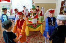 Сегодня в нашем детском саду прошёл праздник «Навруз». Навруз – праздник весны, праздник доброты. В переводе с персидского обозначает «новый день». Это деревья в белом одеянии, это радостные голоса детей в красивых нарядах. Это с вечера накрытые столы в домах, как символ изобилия и гостеприимства. Такой большой праздник для всего детского сада подготовили дети и воспитатели подготовительной и старшей групп совместно с воспитателем по обучению детей татарскому языку. В гости на праздник пришли Весна- Нэурузбикэ, и Дед Мороз - Кыш Бабай. На празднике дети узнали много нового, рассказывали стихи, пели песни на татарском языке, играли в татарские народные игры «Тюбетейка», «Битье горшка» . Дети с большим желанием участвовали во всех конкурсах и играх и эстафетах. После нескольких соревнований Дед Мороз все таки уступил Весне свое место.