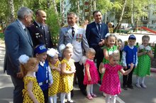 Детский сад встречает гостей! 01.06.2016 Сегодня в честь праздника - дня защиты детей детский сад посетили гости: начальник Управления ГИБДД МВД по РТ полковник полиции Минниханов Рифкат Нургалиевич. На празднике дети в игровой форме показали гостям свои знания ПДД , а также помогли героям праздника справиться с сложными задачами. Кульминацией праздника стала общая фотография с гостями и конкурс рисунков на асфальте.Фотоматериалы можно посмотреть в разделе медиатека.