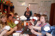 Акция"Белый цветок" 13.04.2015 Благотворительный Фонд помощи детям – инвалидам «НУР» («СВЕТ») 3 мая 2015 года проводит акцию «Белый цветок». Наш детский сад принял активное участие! Пригласили родительницу группы №1 Хапаеву Елену Владимировну, которая провела с педагогами мастер- класс по изготовлению белой гвоздики. Все педагоги активно включились в работу и дружным коллективом изготовили 80 цветов!