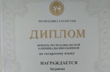 Ученицу 10 класса Загриеву К. – призёра Республиканской олимпиады школьников по татарскому языку (учитель Назмутдинова М.Л.) Гордимся вами!