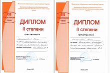 Дипломом II степени награждена ученица 5 класса Малышева А. в секции «Математика» (учитель Яшагина Н.В.) и ученица 8 класса Рахматуллина А. в секции «Психология» (учитель Лаврухина Ю.А.).
