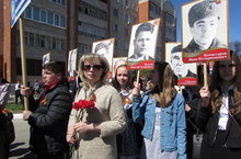 педагогический коллектив и учащиеся гимназии приняли участие в торжественном шествии и возложении цветов к Вечному огню Славы. В одной колонне с педагогами и учениками прошел и "Бессмертный полк" - учащиеся пронесли по улицам города портреты своих погибших прадедов.
