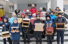 Сегодня учащиеся и родители 3 Г класса приняли участие в акции "Сделано с заботой". Ребята изготовили кормушки для птиц и развесили их на территории гимназии, не забыв положить в них корм. Спасибо за заботу о братьях наших меньших!