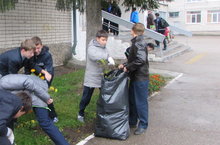 В гимназии продолжается месячник по санитарной очистке территории от мусора. 1 октября на свои закрепленные участки выходили учащиеся с 4 по 11 класс.