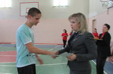 В гимназии продолжается месячник военно – патриотической и спортивной работы. В ходе месячника в восьмых классах прошла спортивная эстафета «Рота, подъём!». Первое место заняла команда 8Б класса. Капитану команды вручили грамоту и сладкий пирог
