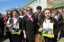 Учащиеся 10А и 8Б классов приняли участие в акции «Полк бессмертия». Ребята торжественно несли портреты солдат, воевавших в годы Великой Отечественной войны. Эта почетная миссия была доверена 9 мая активистам учебы и школьной жизнь.