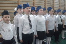 В спортивном зале проводился смотр строя и песни среди учащихся 4-5 и 6-7 классов...