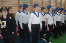 В спортивном зале проводился смотр строя и песни среди учащихся 6-7 классов...