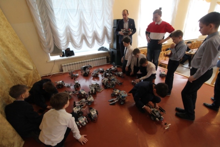 Со своими роботами учащиеся 3-4 классов приняли участие в соревнованиях «Сумо» и командных соревнованиях «Робобои».