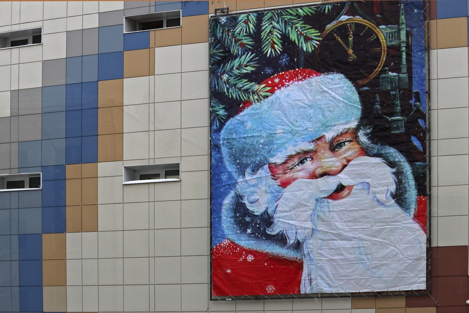 На фасаде гимназии весело улыбается нам Дедушка Мороз. Скоро праздники. А вы ждёте Новый год?