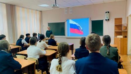 10 октября день по традиции начался с поднятия флагов Российской Федерации и Республики Татарстан и "Разговоров о важном". Сегодня ребята говорили об отце. Тема занятия для всех классов была: "Отчество от слова "отец"".