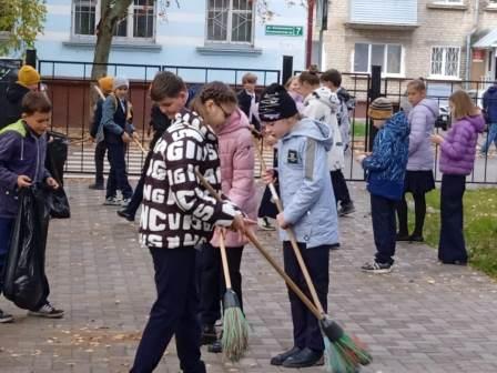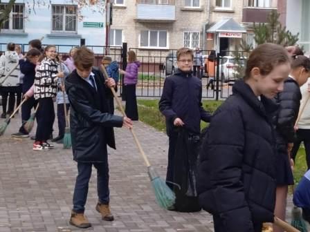 В гимназии проходят экологические акции по очистке территории гимназии от опавшей листвы. Сегодня на уборку выходили пятые и десятые классы.