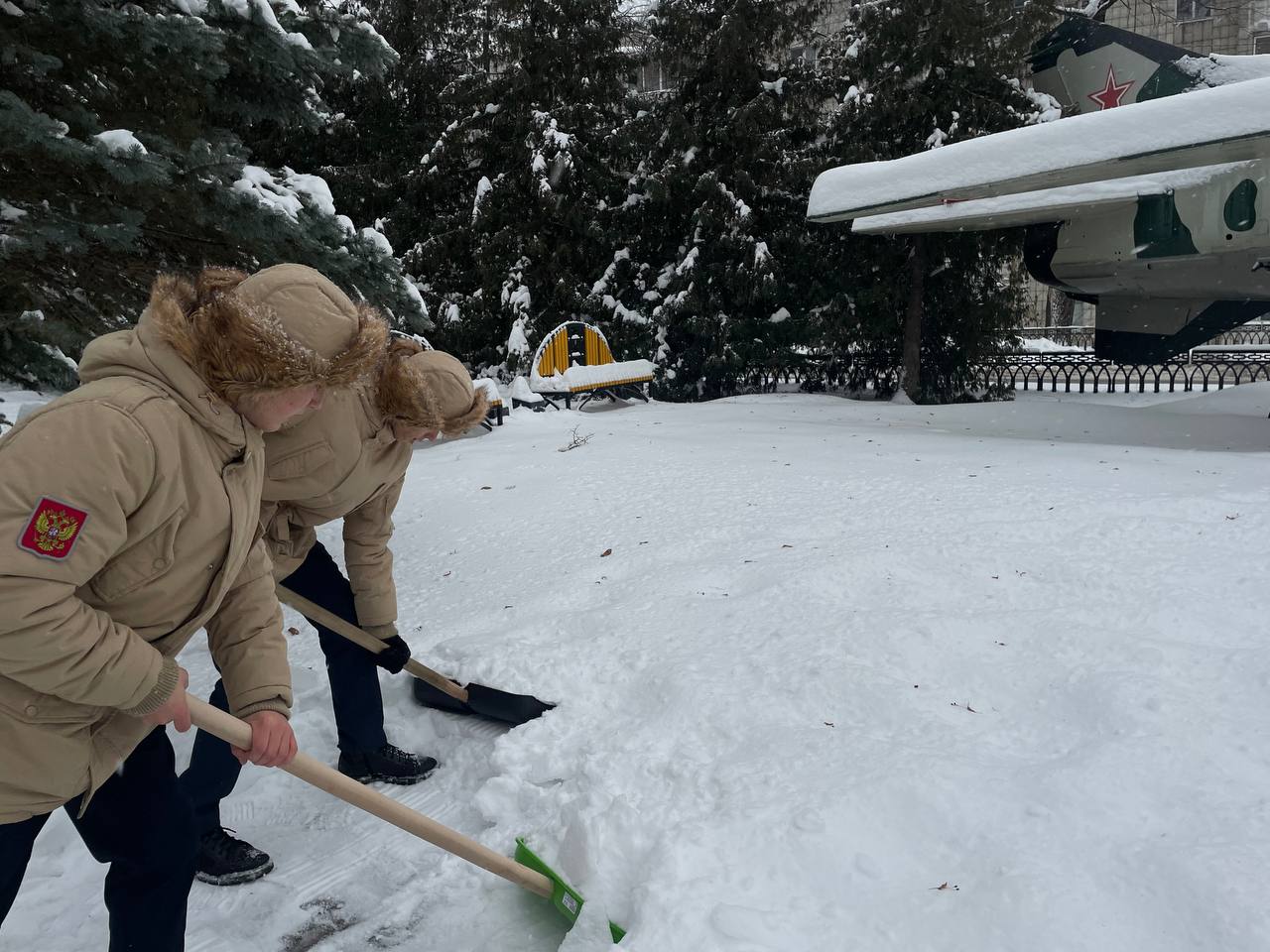 Ежегодная традиция уборки снега в Парке Победы города Зеленодольска прочно вошла в календарь юнармейских дел отряда "Патриот" им. А.В.Суворова МБОУ "Гимназия №3 ЗМР РТ".