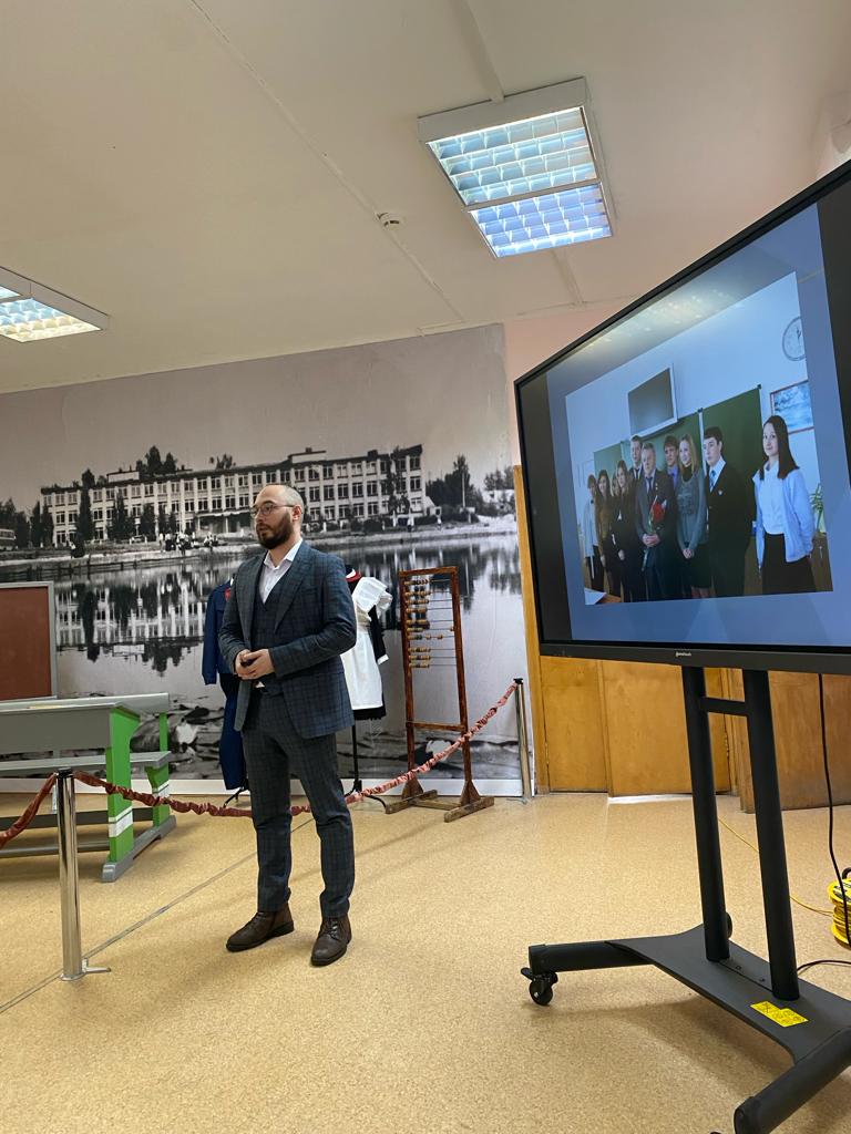 Опубликовано: 15.12.2023Сегодня в нашей школе прошел единый классный час, посвященный дню гимназии.Вместе с учащимися 5 и 6 классов был открыт уголок школы. Перед ребятами выступили бывшие ученики школы: Багрянская Н Е, Нуруллин А Р, Матвеева А М. Они расскаали о том, какой они запомнили любимую школу.