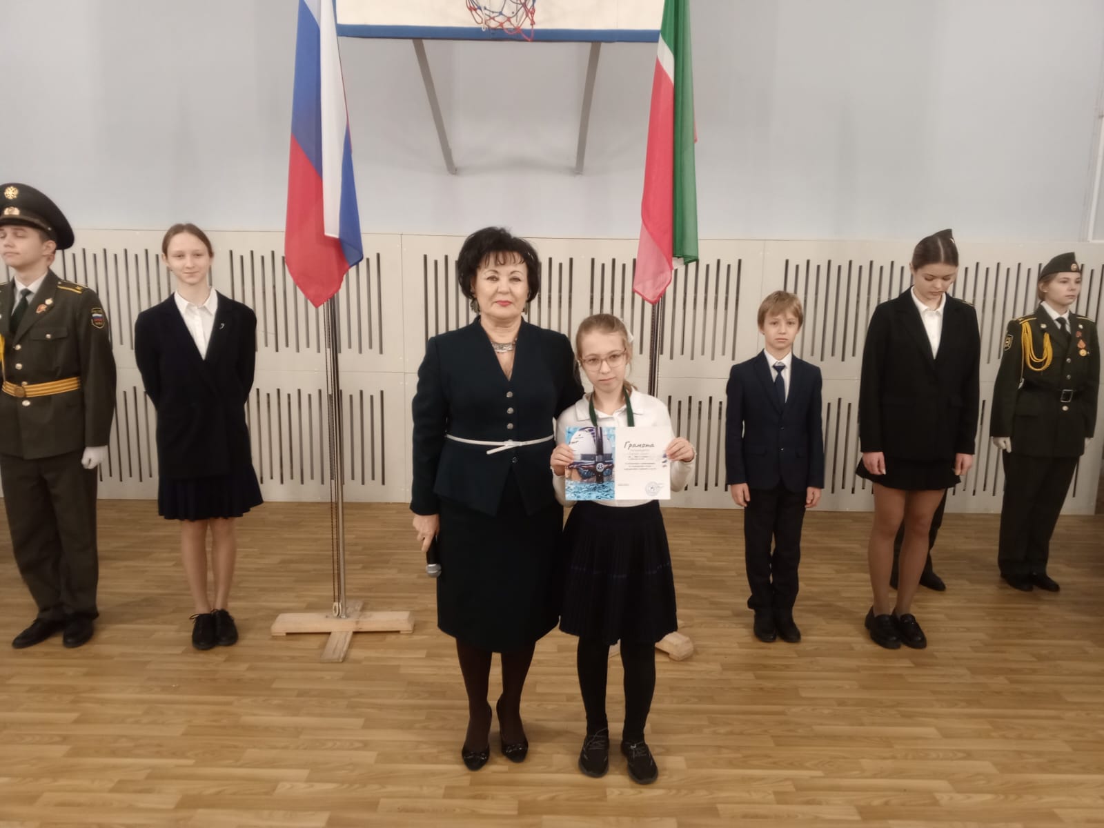 Опубликовано: 23.12.2024На церемонии поднятия флагов прошло награждение учеников - призеров и победителей различных соревнований. Хафизова А., ученица 5 класса, стала победителем отборочных соревнований по подводному спорту. Также были награждены призеры муниципального этапа Всероссийского физкультурно-спортивного комплекса "Готов к труду и обороне": Филиппов Н., ученик 4 класса, Хрычева К., ученица 10 класса, Фахрутдинов И., ученик 9 класса. Поздравляем!