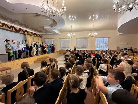 Ученики 3 класса подготовили и показали представление "Новогодние приключения" ребятам начальной школы