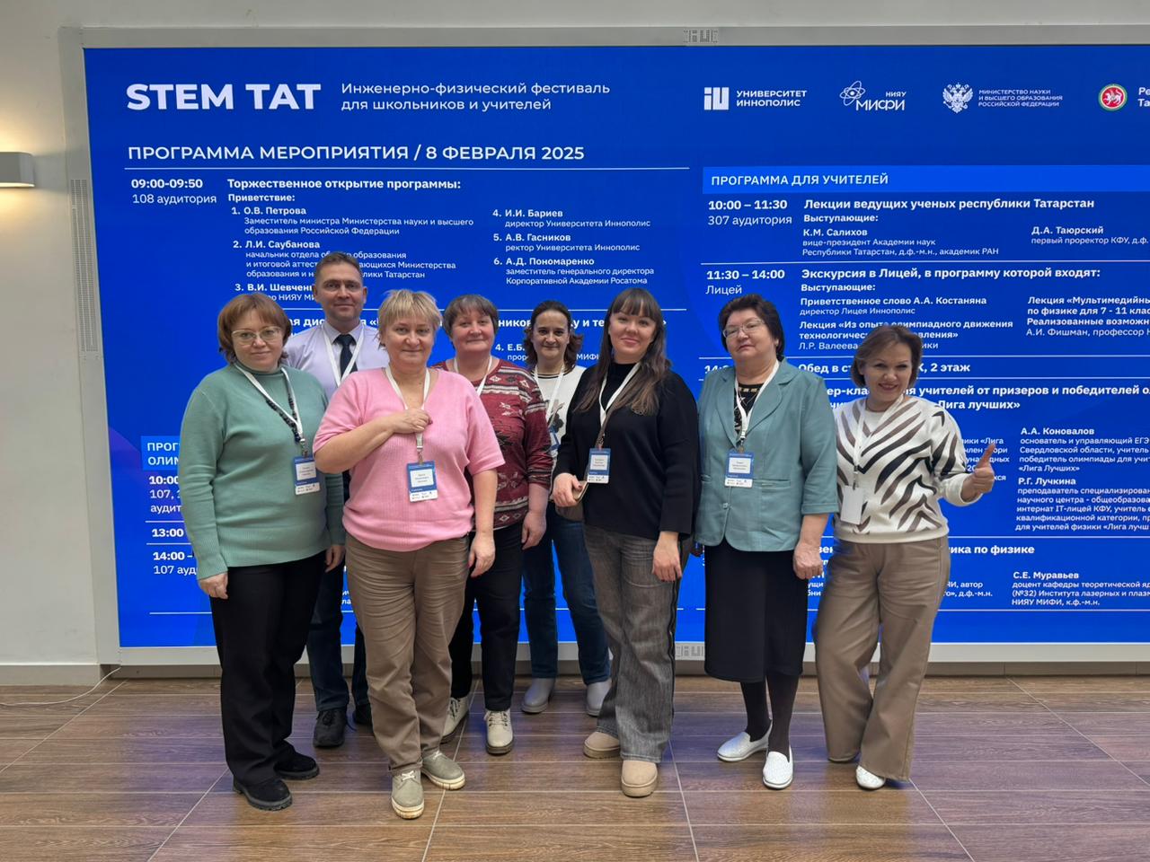 Сегодня, 8 февраля, учителя гимназии Антонова Д.А. и Ляпченкова Л.В., учащиеся 11 класса посетили Инженерно-физический фестиваль для школьников и учителей "STEM TAT"
