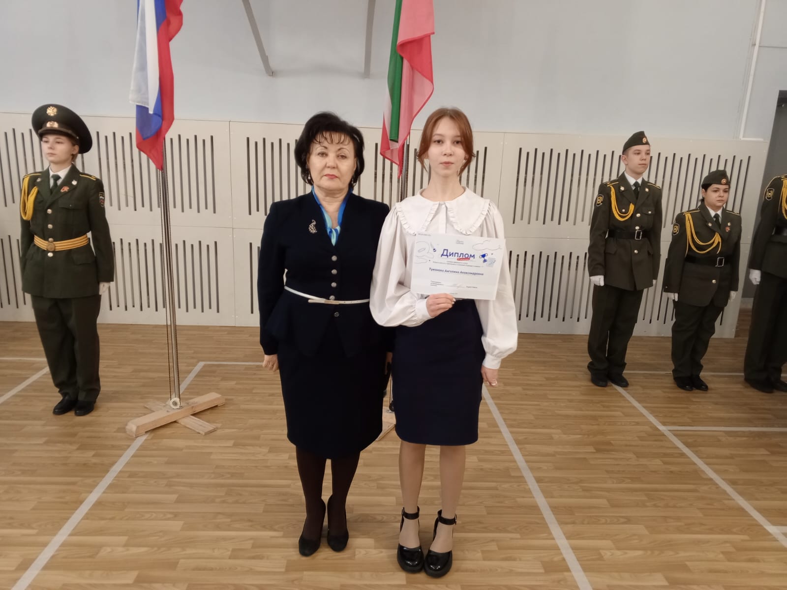 Опубликовано: 10.02.2025На церемонии поднятия флагов традиционно были награждены победители и призеры конкурсов и олимпиад: Царёв В., ученик 10 класса, призёр заключительного этапа Республиканской олимпиады школьников по химии "Путь к Олимпу", призёр регионального этапа Всероссийской олимпиады школьников по химии; Осипов В., ученик 11 класса, призёр заключительного этапа Республиканской олимпиады школьников по химии "Путь к Олимпу"; Туманова А., ученица 10 класса, призёр финального этапа Всероссийского чемпионата сочинений "Своими словами". Поздравляем и желаем дальнейших успехов!