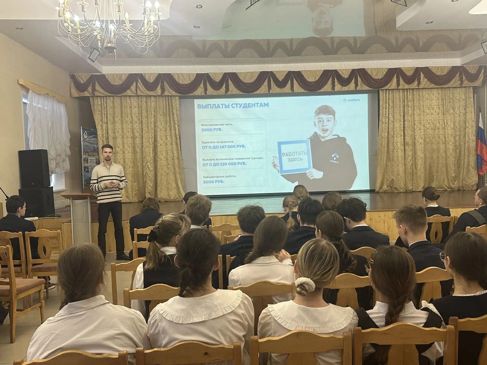 Опубликовано: 28.01.2026В Гимназии № 3 состоялась профориентационная встреча для учеников 9 классов. Представитель образовательного центра "Алабуга Политех" познакомил будущих абитуриентов с возможностями учебного заведения.