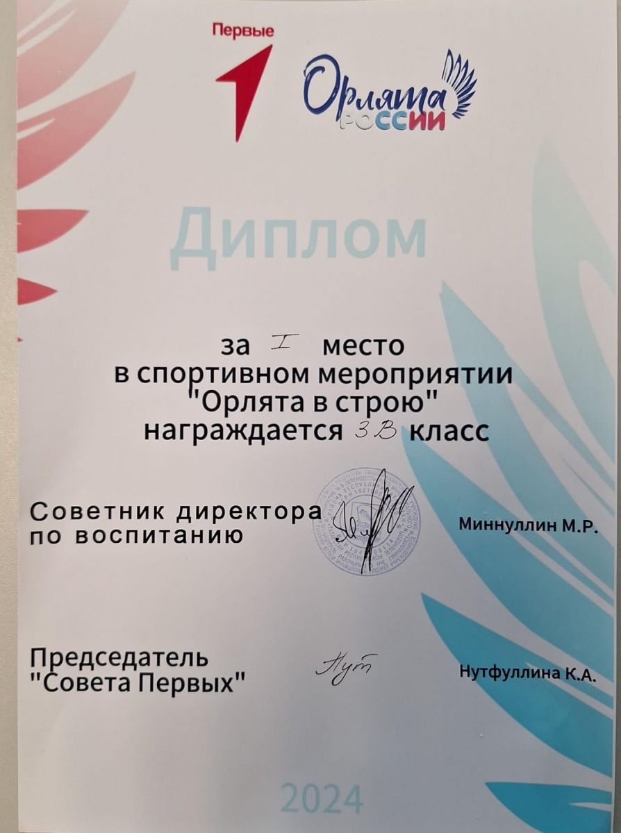 Сегодня первичное отделение гимназии Движения Первых совместно с Советником директора по воспитанию и председателем первичного отделения провели спортивное мероприятие «Орлята в строю» для учеников 2-4 классов. На мероприятии присутствовала помощник Главы Зеленодольского муниципального района Республики Татарстан, руководитель местного отделения Российского движения детей и молодежи «Движение Первых» в Зеленодольском муниципальном районе Калистратова Веста Владимировна. Ребята участвовали в различных конкурсах и боролись за кубок «Орлята России». Гран-при получил 3а класс, I место 3в класс, поздравляем!
