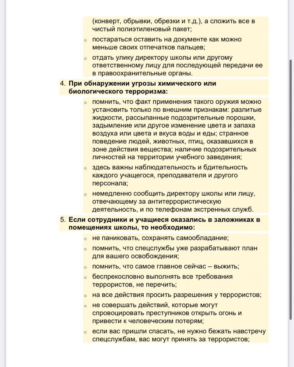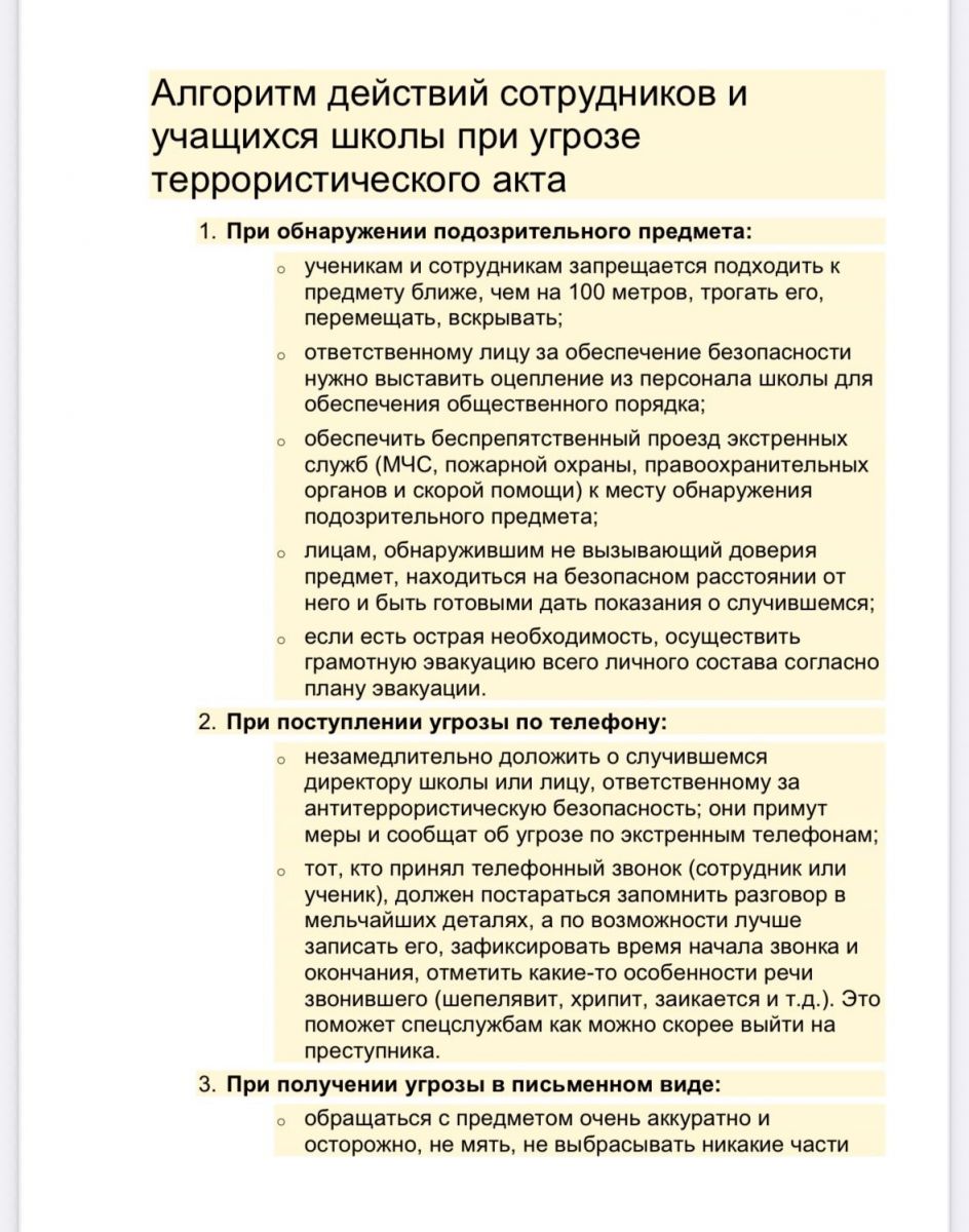 Алгоритм действий при угрозе террористического акта