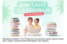 Каждый желающий сможет принять участие в ежегодном Всероссийском диктанте по общественному здоровью и диспансеризации на платформе диктантздоровья.рф. Материалы для диктанта разработаны ВОД «Волонтеры-медики» при поддержке Роспотребнадзора и Минздрава России. Тест включает около 40 вопросов на ключевые темы, посвященные правилам здорового питания, основам ЗОЖ и гигиены, важности физической активности и прохождения диспансеризации. Для каждого вопроса предлагается несколько вариантов ответа – нужно выбрать верный.