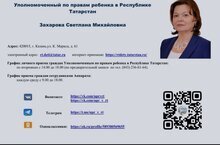 Уполномоченный по правам ребенка в Республике Татарстан - Захарова Светлана Михайловна.