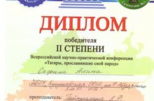 Мәктәбебезнең инглиз теле укытучысы Шакирова Ләйсән Илгизәр кызы Казан шәһәрендә үткәрелгән Мәхмүт Хөсәен исемендәге IV Республикакүләм фәнни - гамәли конференциядә катнашып, II дәрәҗәдәге диплом белән бүләкләнде. Котлыйбыз!