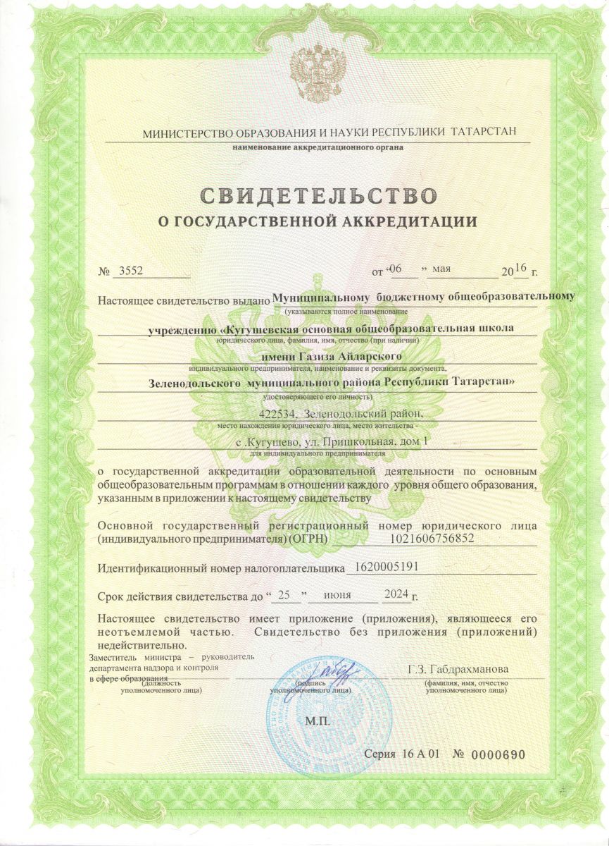 | Адрес: | 422534, РТ, Зеленодольский район, с. Кугушево, ул. Пришкольная,1 |