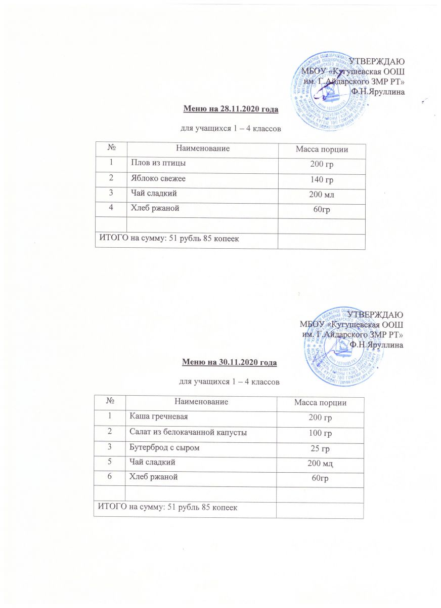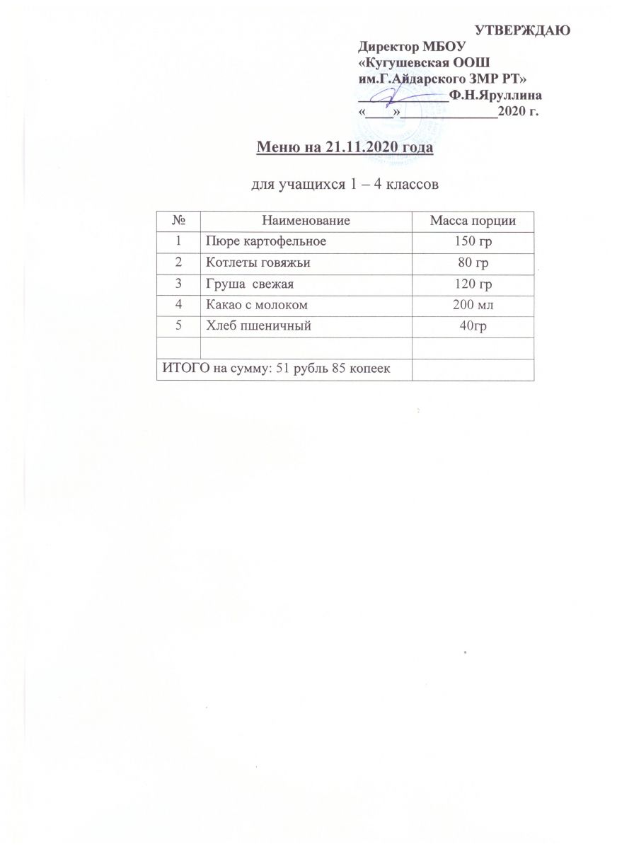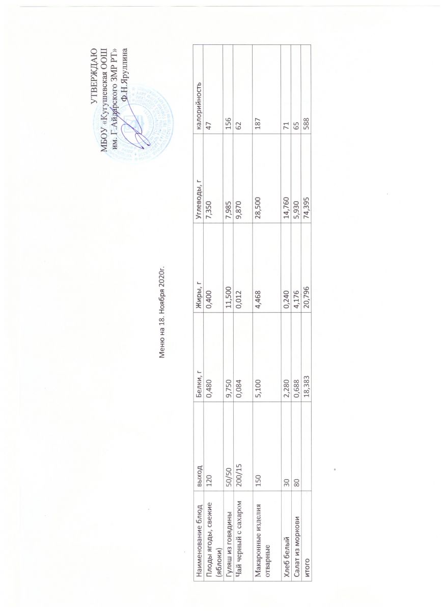 Меню на 16.12.2020 и 17.12.2020В школе функционирует столовая на 60 мест. В 2020-2021 учебом году всего 33 обучащихся, питаются 100%.