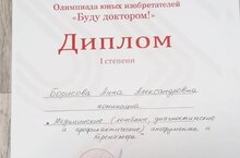 Поздравляем ученицу 11А класса Борисову Анну- победителя республиканской олимпиады юных изобретателей "Буду доктором!" в номинации "Медицинские (лечебные, диагностические и профилактические) инструменты и тренажеры".
