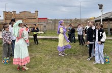 Наступление долгожданных летних каникул учащиеся 5 В класса отпраздновали поездкой в татарский этнографический музей под открытым небом «Туган Авылы». Встретил класс гостеприимный хозяин татарской деревни с песней под гармошку и с живыми рассказами об особенностях жизненного уклада татарской деревни. Научил набирать воду из старинного колодца, наглядно продемонстрировал назначение каждой детали в интерьере татарского дома, показал домик Шурале и пригласил посетить избушку Бабы Яги. Помимо татарского дома и различных мастерских (гончарной, ткацкой, кузнечной), «ТуганАвылы» славится самой старой в Татарстане (при этом действующей)ветряной мельницей, построенной в 1943 году руками женщин и подростков