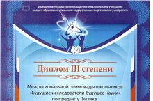 Дипломами II и III степени Межрегиональной олимпиады школьников «Будущие исследователи - будущее науки» по предмету Физика награждены ученица 10А класса Касимова А. и ученик 7А класса Шабалов А.