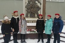 С самого утра в фойе школы шел видеофильм.Юнармейцы под руководством Мурзина А.П. вышли к монументу «Детям войны» на митинг с возложением цветов. Учителя истории провели урок мужества.Восьмиклассники подготовили классный час для учащихся начальной школы. Дети должны помнить имена героев и гордиться своей Родиной!