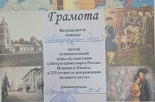 Поздравляем команду обучающихся «Литературный дозор» (руководитель К.А.Афанасьева) призеров муниципальной игры-путешествия «Литературная карта России. Пушкин и Казань: к 225-летию со дня рождения великого поэта 26.01.2024