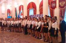 Церемония вступления в общественно-государственную детско-юношескую организацию "Российское движение школьников", проходившее в Казанской ратуше. 22.08.2016