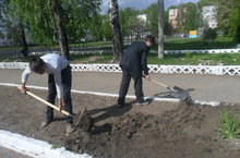 В субботнике 16.мая приняли участие 190 человек. Убирали прилегающую и школьную территорию, вскапывали газоны.