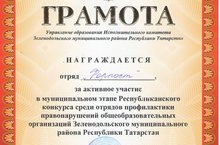 19 марта отряд "КУРС" принял участие в муниципальном этапе Республиканского конкурса среди отрядов профилактики правонарушений общеобразовательных организаций ЗМР РТ, где достойно представил лицей.