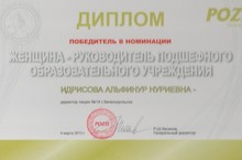 В Зеленодольском Центре культуры, искусства и народного творчества им. А.М. Горького состоялся корпоративный праздник ОАО «ПОЗиС», посвященный Международному Женскому дню. После теплых речей последовала церемония награждения – вручение фирменных премий,победителям конкурса "Женщина года". В номинации "Женщина-руководитель подшефного образовательного учреждения" была награждена директор нашего лицея Альфинур Нуриевна Идрисова.