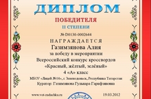 С 15.01.2012 - 19.03.2012 в Центре Развития Мышления и Интеллекта( Всероссийские дистанционные олимпиады и конкурс) проходил Всероссийский конкурс кроссвордов