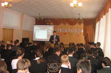 Сегодня ученики старших классов встретились с представителями завода им. Горького. Заводчане рассказали о выпускаемой продукции и показали видеоролик об истории завода.