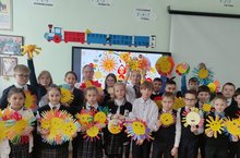 Обучающиеся 4А и 4К классов приняли участие в городской акции «Ясно солнышко». Детей ожидала игровая программа, сладкие призы, танцы. Изготовленными солнышками оформили баннер.