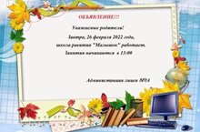 Уважаемые родители. 26 февраля 2022 года школа развития "Малышок" начинает свою работу в 13.00. Ждем вас. 26.02.2022