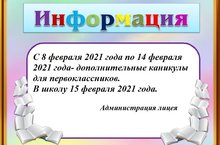 Дополнительные каникулы для учащихся 1-х классов 14.02.2021
