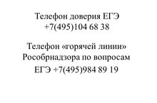 Телефоны доверия ЕГЭ-2019 25.06.2019