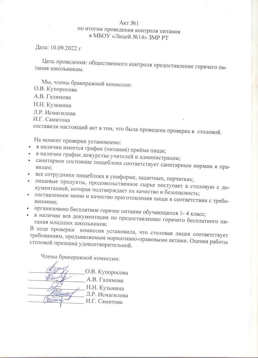 Положение о бракеражной комиссии на 2023 - 2024 учебный год