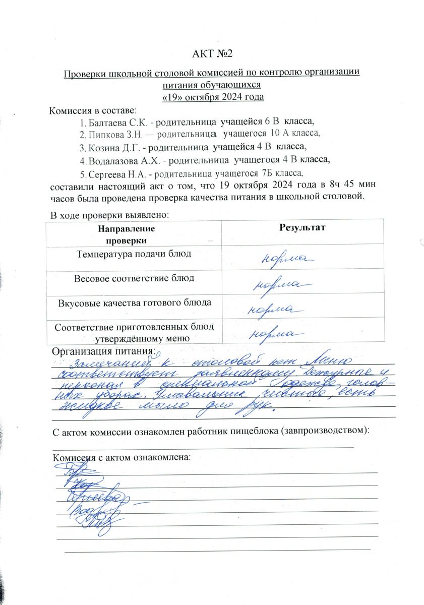 Фотоотчет организации питания 2024-2025Информация проверки организации питания в школьной столовой родительским контролем 2023-2024