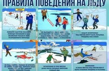 - Если лёд проломился, не паниковать, сбросить тяжёлые вещи, удерживаться на плаву, звать на помощь.