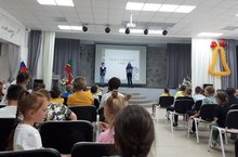 Сегодня в пришкольном лагере состоялась встреча с сотрудниками ГИБДД Шакировой З.В., Леонтьевой Ю.И. С ребятами проведена профилактическая беседа о соблюдении правил дорожного движения, активисты школьного отряда ЮИД организовали познавательную викторину " Безопасное движение", по итогам которой, победители получили памятные призы от ГИБДД.