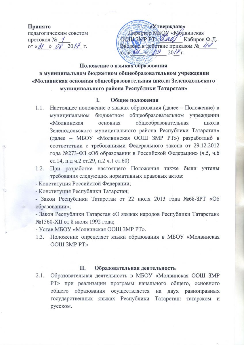 МБОУ «Молвинская основная общеобразовательная школа» Зеленодольского муниципального района РТ / "Татарстан Республикасы Зеленодольск муниципаль районы Мулла Иле төп гомуми белем мәктәбе" муниципаль бюджет белем бирү учреждениесе